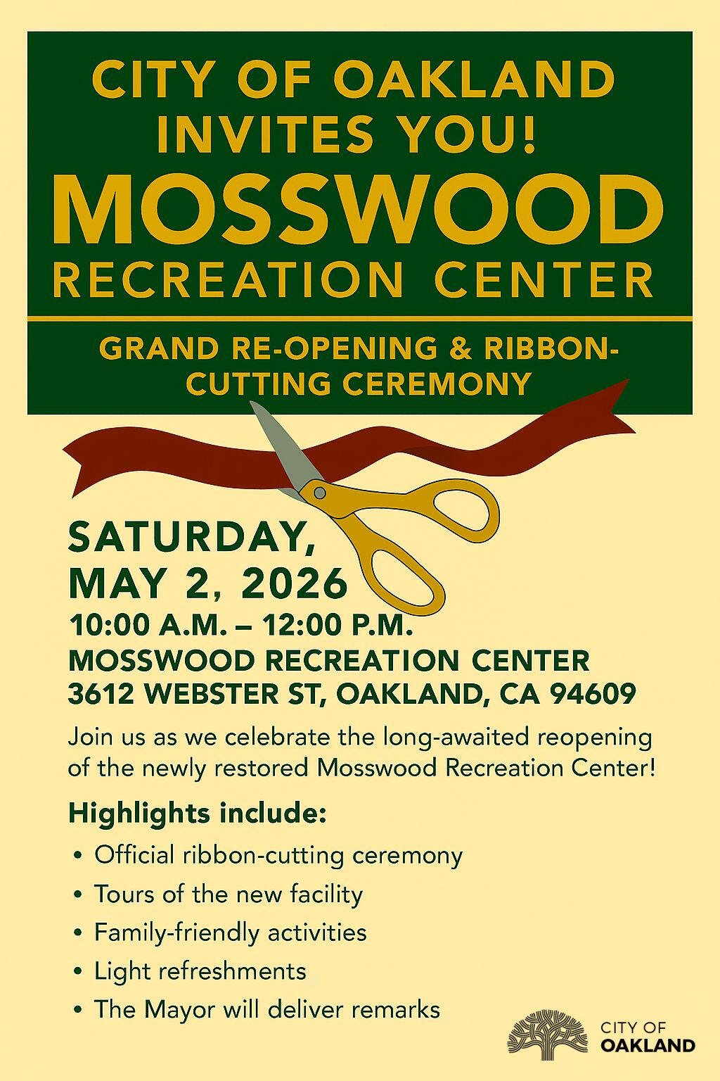 WELCOME TO MOSSWOOD! The mission of the Mosswood Park Recreation Advisory Council is to enhance, maintain and protect Mosswood Park and its surrounding neighborhood communities. The council strives to work with the diverse population represented by the Mosswood Park community to develop a strong, inclusive and impactful voice in order to improve the livability of our environment. We work to support the future of the park, the Recreation Center, and the historic Moss House.**The Council is You. The Council is Us. **