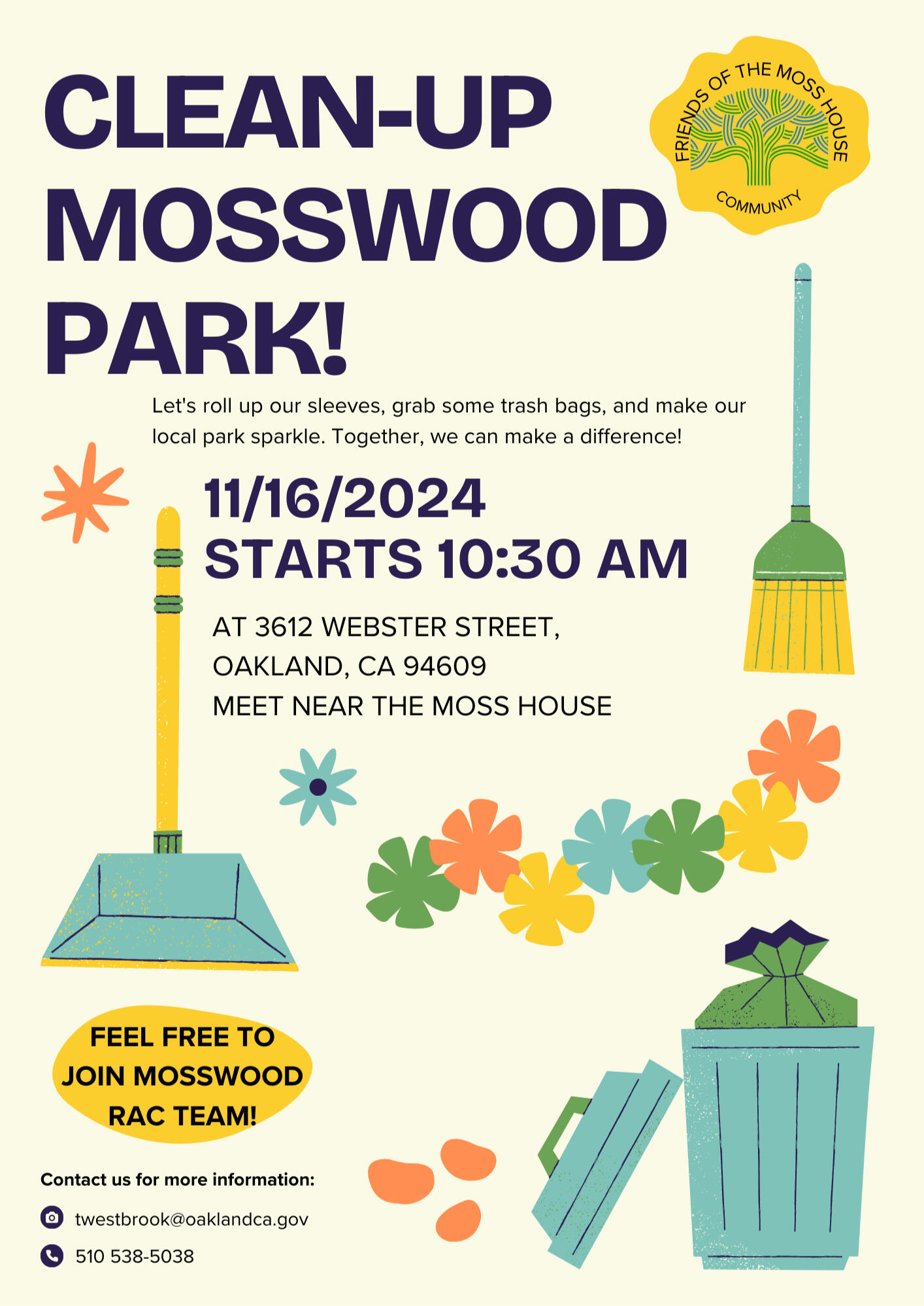 Want to get more involved with Mosswood Park? Join our group for monthly meetings and opportunities to engage more deeply in improving the park.
